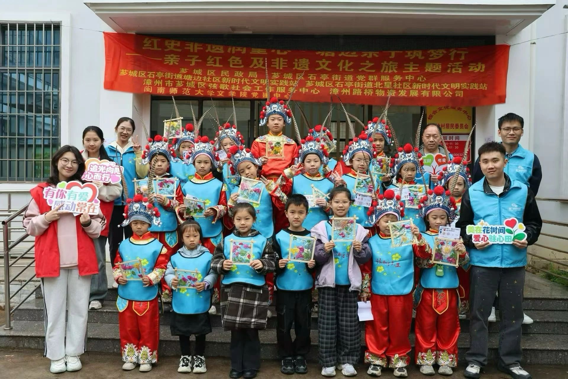 党建中心联合漳州市芗城区政歌社会工作服务中心等多家单位,在石亭镇塘边村开展“红色非遗润童心,塘边亲子筑梦行”文化体验进社区活动。活动以“红色教育+非遗体验”为主线,通过沉浸式亲子互动构建文化传承与社会共融的双向桥梁。