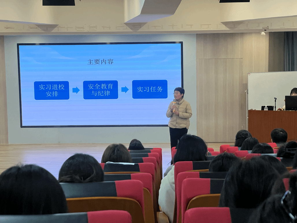 会议最后,陈茹铃对本次会议进行了总结,并为同学们送上诚挚的祝福。她希望同学们在实习过程中能够学有所获、行有所成,以饱满的热情和坚定的信心迎接实习生活的挑战。