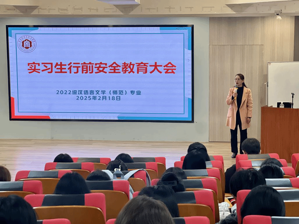 于2025年2月18日下午在博西梯一召开2022级汉语言文学(师范)专业实习生行前安全教育大会。天使动漫