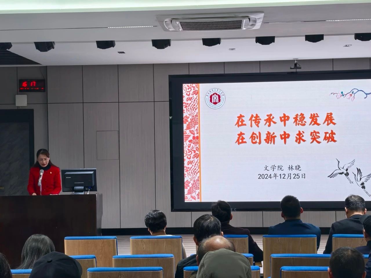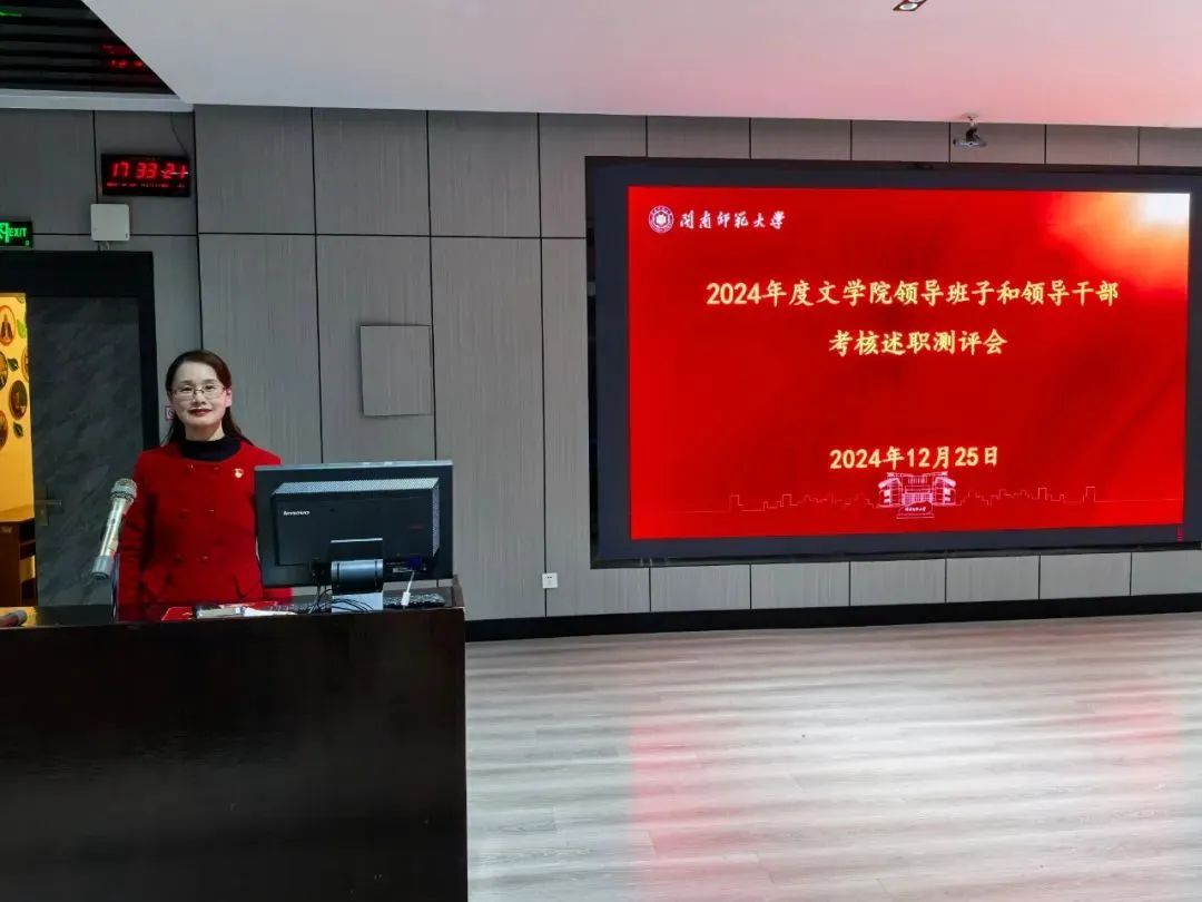 会上,林晓首先代表学院领导班子作2024年度工作述职报告。报告指出,学院领导班子坚持以习近平新时代中国特色社会主义思想为指导,认真学习贯彻党的二十大和二十届三中全会精神,围绕教育强国战略,围绕革新增效、融合发展主题主线,围绕中国语言文学一级学科博士点建设,坚持和加强党的全面领导,落实全面从严治党主体责任,深入开展党纪学习教育,高质量开展巡察整改工作,在党的建设、思政教育、教学改革、科学研究、人才培养、社会服务和对外交流合作等方面均取得了较好的成绩,同时深刻分析了学院办学发展中存在的短板和不足,明确了今后的努力方向和改进措施。