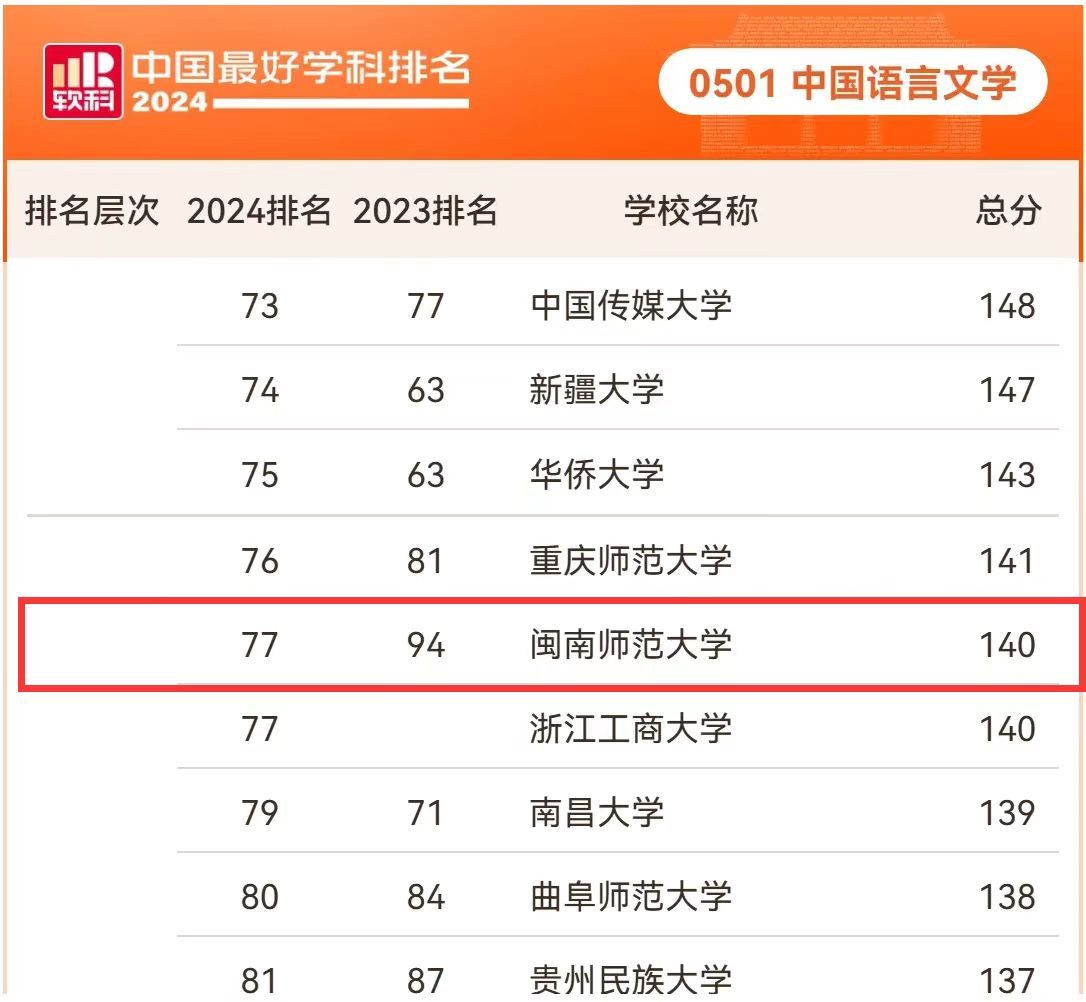 中国语言文学学科在所有参评院校中排名第77名,较2023年上升17位次,位列全国前50%,取得历史性进步!