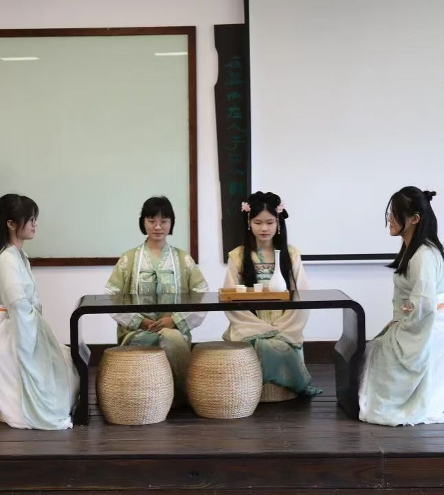 会谈前,在杨杏红的介绍下,湖南第一师范学院一行参观了学院学科建设展示、海峡两岸茶文化课堂、龙人古琴教室等特色办学场所,在龙人古琴教室,学院泠音琴社的同学们以一首《鹿鸣》对来访嘉宾表示热烈欢迎。