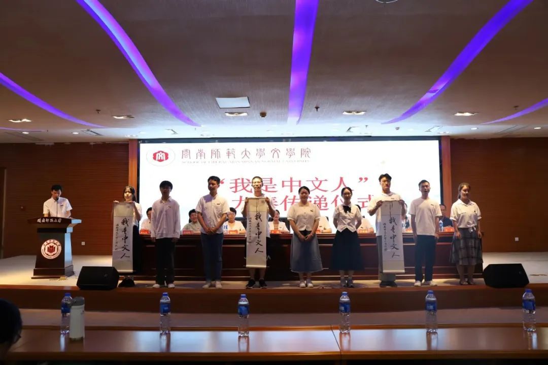 最后,举行“博士生—硕士生—本科生”新生接力棒传递仪式。这一仪式不仅象征着学术的传承与延续,更彰显了中文人团结奋进、砥砺前行的精神风貌。“我是中文人”不只是停留于接力棒上的文字,更是每一名新生镌刻于内心的铮铮誓言。相信在未来的日子里,新生们将在中文的领域里绽放出属于自己的光彩,为传承和弘扬中华文化贡献自己的力量。