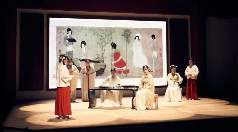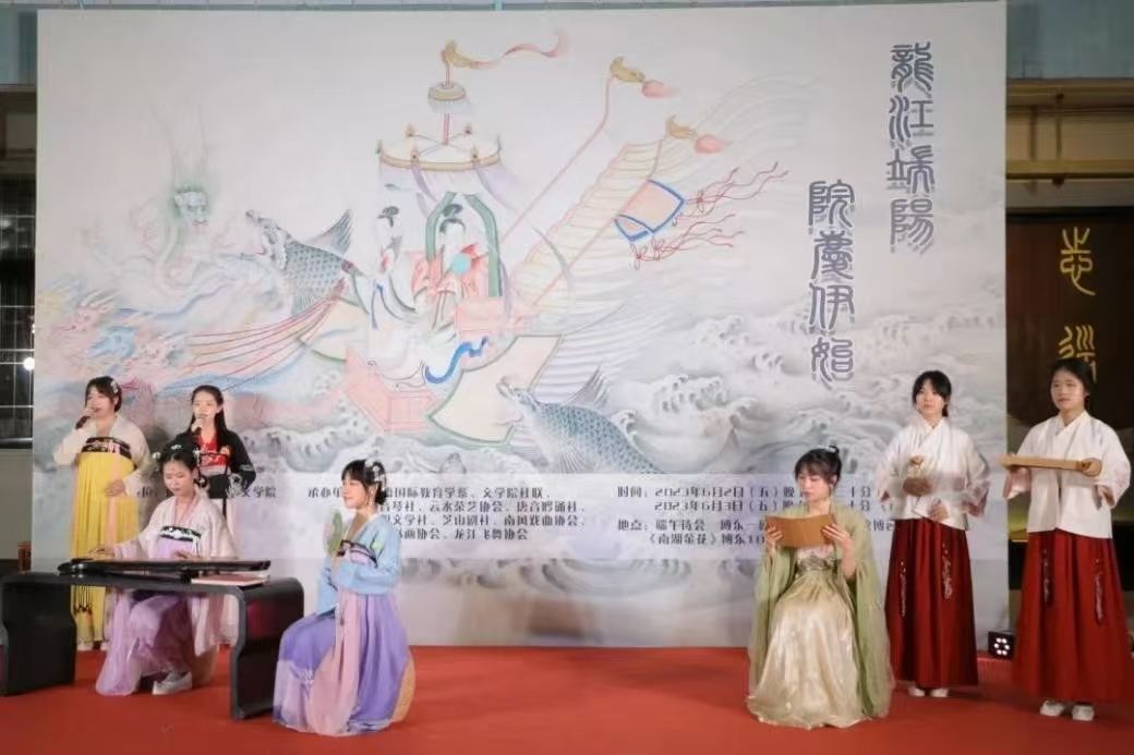 成立了独特的诗歌、书画、古琴、茶艺、戏曲、戏剧、吟诵、舞蹈等社团,开设传统艺能课程,丰富中文专业文化学习的内涵与外延。在坚持对学生专业阅读与写作基本能力培养的同时,与大学生思想政治教育、社会主义核心价值观培育有机结合,以社团活动、社会实践等形式构建了第一课堂、第二课堂与社会实践三位一体的专业教育与思政教育融合体系,贯彻文化育人,培育出“志于道,据于德,依于仁,游于艺”的新一代中文学子。