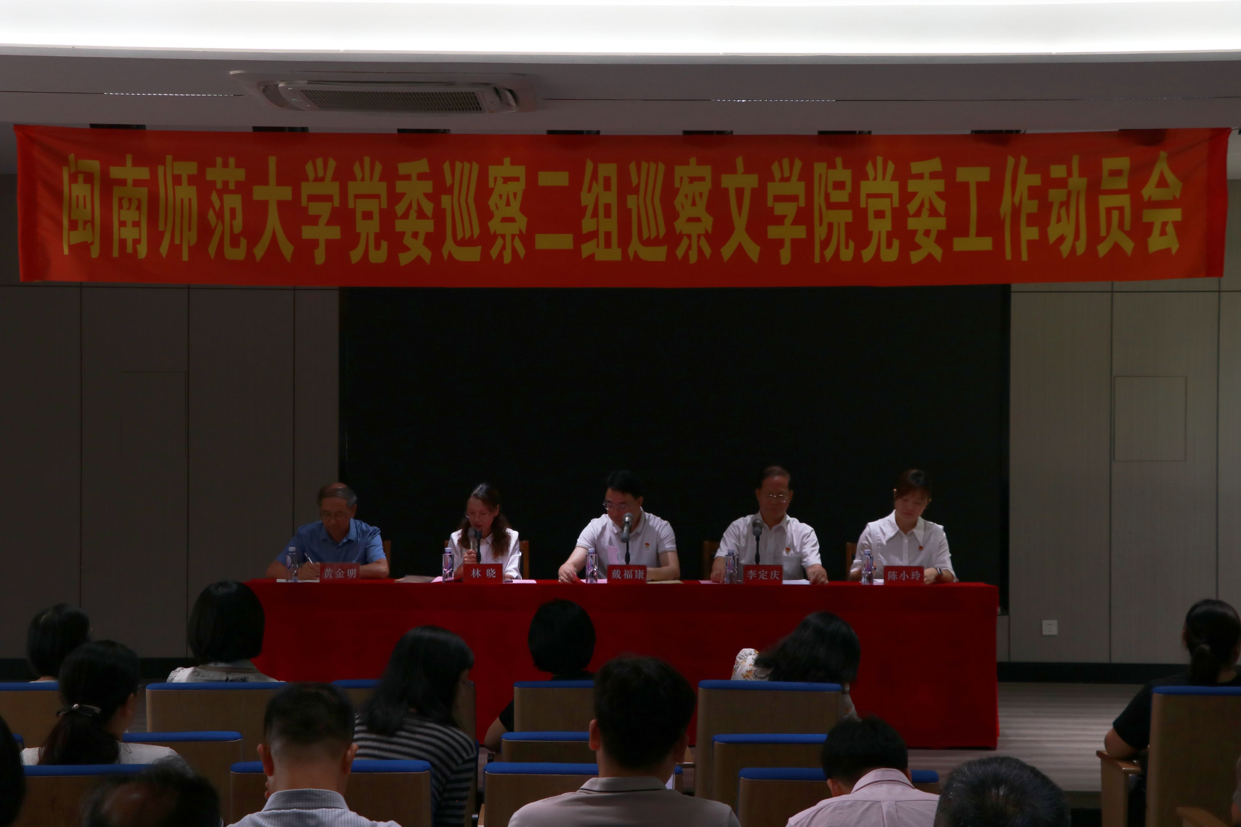 党政主要领导见面沟通会。会上,巡察二组组长李定庆通报了巡察任务和工作安排,校党委常委、纪委书记、监察专员、巡察工作领导小组副组长戴福康对做好巡察工作提出要求,学院党委书记林晓主持会议并作表态发言。巡察二组全体成员、巡察办相关人员、学院党政领导班子成员、全体教职工及学生代表参加会议。