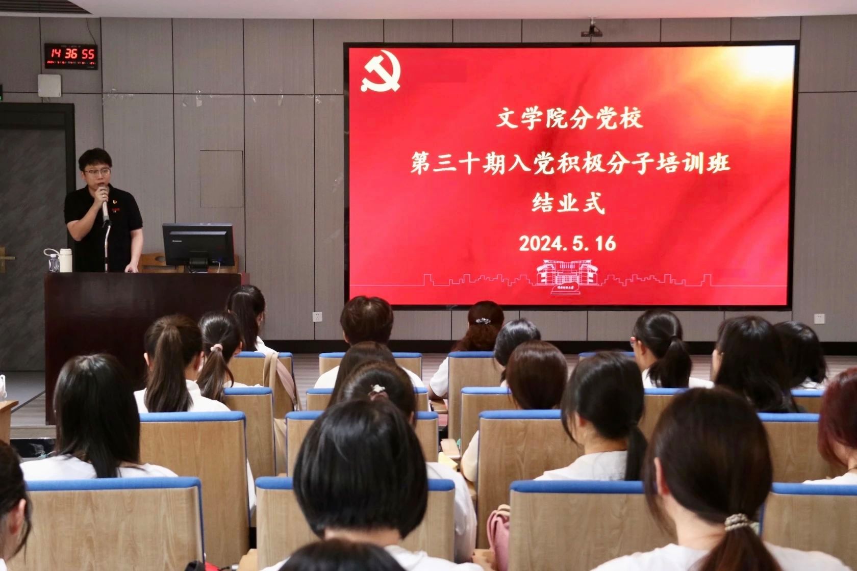 结业式上,优秀学员代表郑瑾容发言,她向学院党委以及为本次培训班授课的老师们表示诚挚感谢,并分享了自己的学习心得和感悟。她表示,通过此次培训,更加坚定了自己加入党组织的决心,她将和各位学员们一道,以习近平新时代中国特色社会主义思想为指引,以“中文人”传承弘扬中华优秀传统文化的自觉为底色,自觉接受党的纪律的约束,严格遵守和自觉维护党的纪律,在不断锤炼自我中夯实理论基础、增强实践能力、提升学科素养,在推进中国式现代化中贡献青年力量。