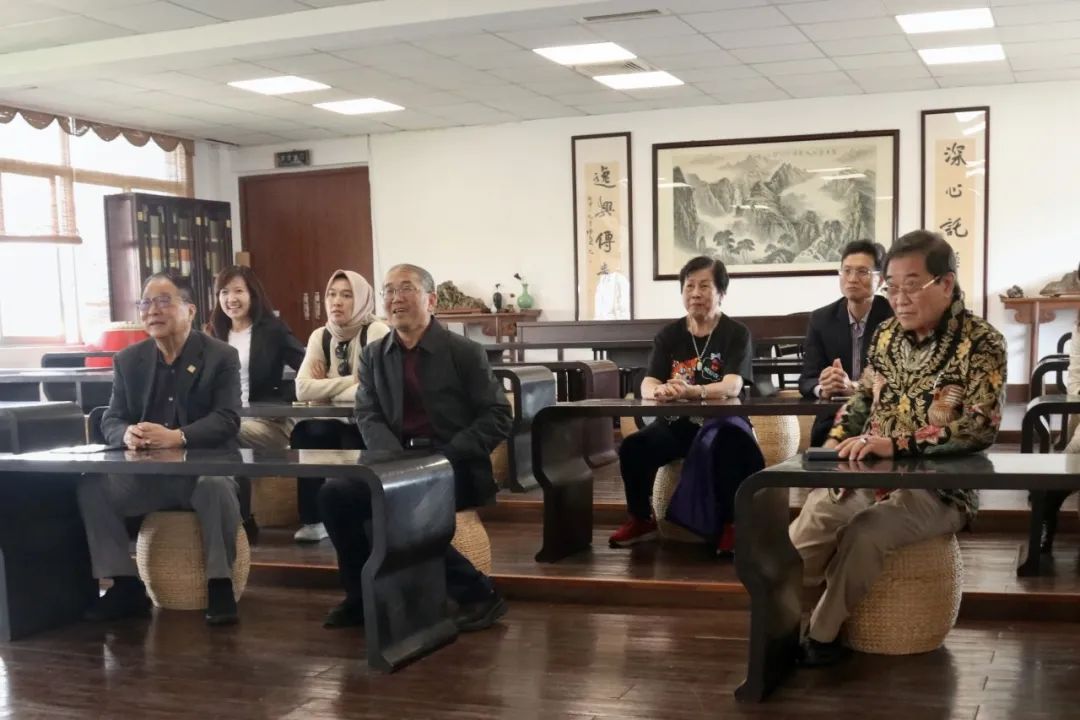 印尼华裔总会主席黄德新一行参观了海峡两岸茶文化课堂、创意写作中心、龙人古琴教室、海丝钟表教室等。在两岸茶文化课堂,台藉教师罗文玲结合茶的品鉴,讲述了中国悠久的茶文化历史、学校开展的优雅教育和茶文化研习活动。在古琴教室,天使动漫
