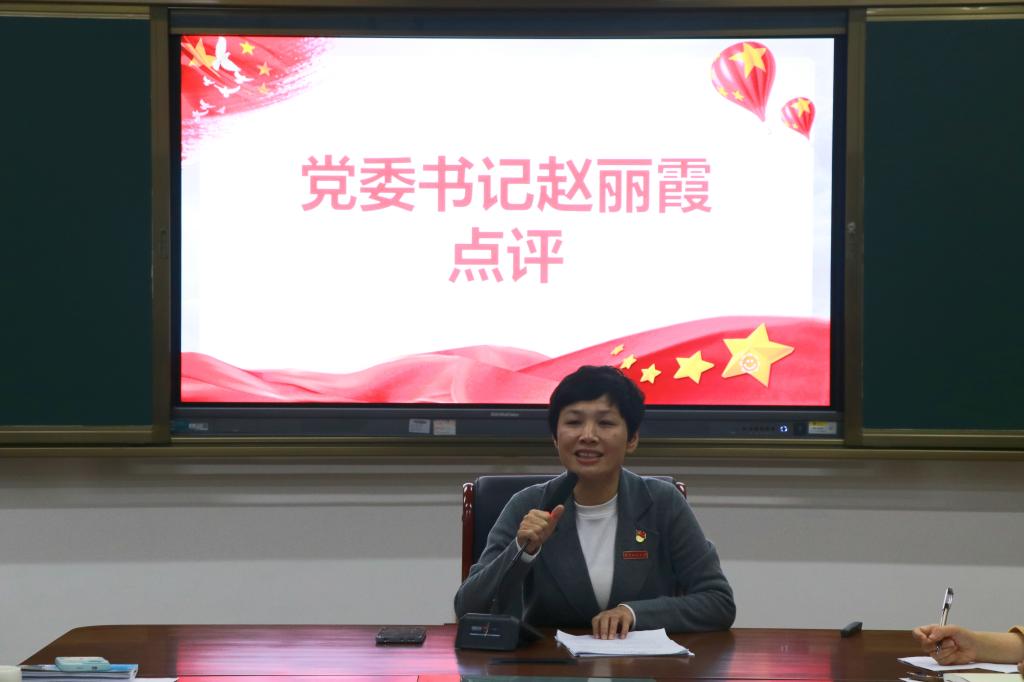 赵丽霞指出,过去的一年里,各支部紧扣新时代党的建设总要求,扎实开展学习贯彻习近平新时代中国特色社会主义思想主题教育,积极投身于学院、学校的发展大局和各项中心任务中,党建工作取得一定的成效。她强调,党支部书记是支部党建工作“第一责任人”,要旗帜鲜明讲政治,步调一致向前进,在深刻领悟习近平新时代中国特色社会主义思想,时刻对标落实上级党委决策部署中做表率,发挥支部书记“火车头”作用;要以“三会一课”为着力重点,以深化“一支部一特色”建设为抓手,以融合赋能为导向,不断提升党建工作质量,建强党组织战斗堡垒;要聚焦问题,狠抓落实,在日常教学科研中把党员身份亮出来、先进标尺立起来、先锋形象树起来,当好学院管理建设的得力助手和师生群众信赖依靠的温暖组织。