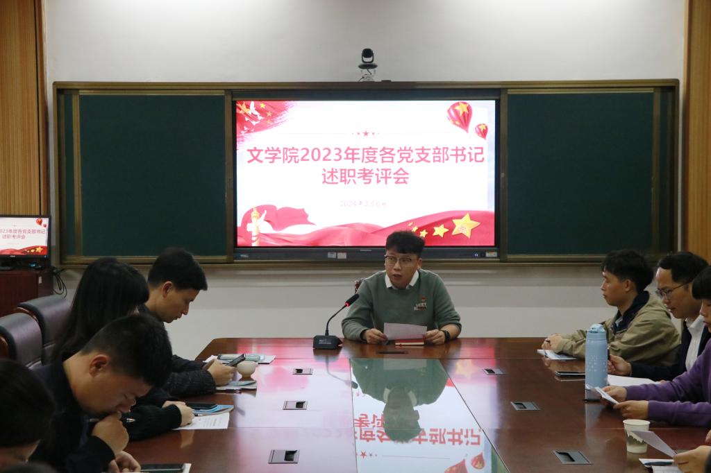 党委在博文楼东区110会议室组织开展2023年度党支部书记述职评议会。学院党委委员、全体党支部书记、部分师生党员代表参加会议。