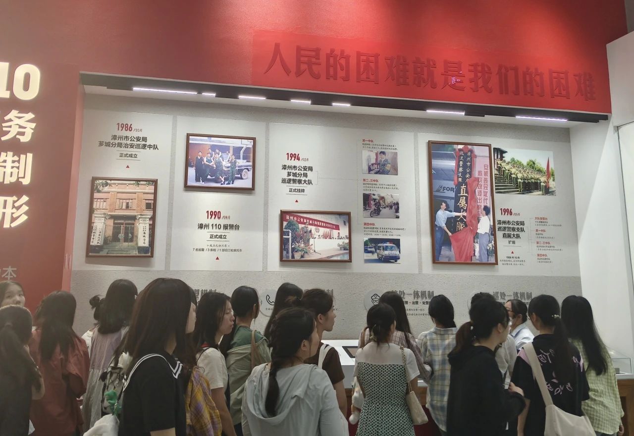 在讲解员的介绍下,培训班学员依次参观了“时代孕育”“时代先锋”“守护漳州”“时代答卷”“时代荣誉”五个展区,通过事迹记载、实物陈列及视频资料,全方位、多角度地了解了“漳州110”的发展历程和功勋荣誉。