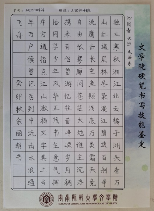 举办第二届师范生硬笔书写鉴定活动,21级汉语言文学(师范)专业全体学生参加此次活动。
