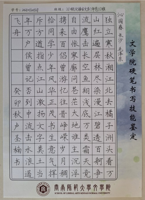 的师范生们能继续以书写汉字为桥梁,进一步夯实教学基本功,提高使用国家通用语言文字的规范性和严谨性,挖掘自身潜力,展现专业素养,为未来从事教师职业奠定良好的基础。