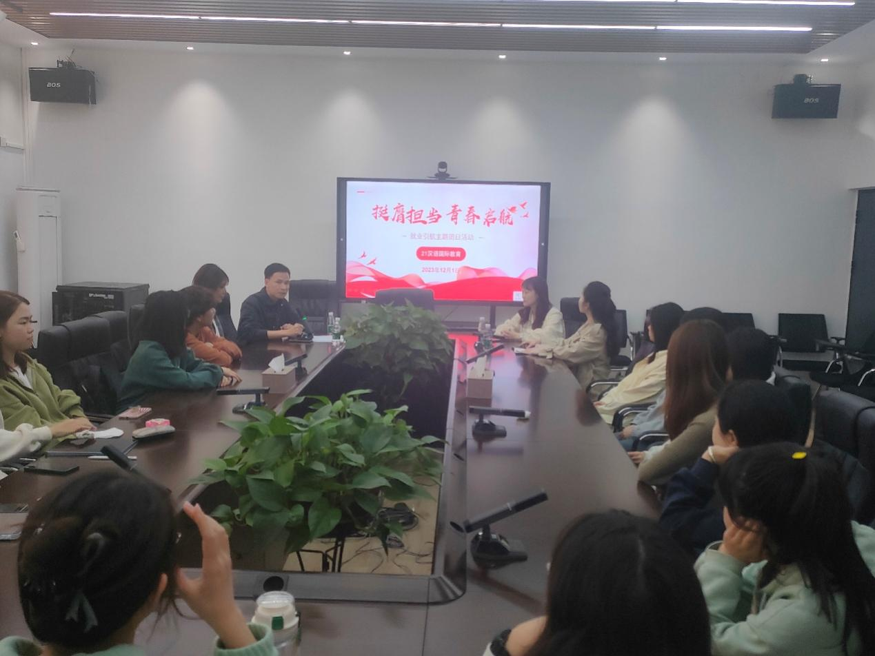 2021级汉语国际教育团支部开展“挺膺担当 青春启航”就业引航主题团日活动,校团委副书记童娟、校团委社团工作部副部长张雅娟、天使动漫