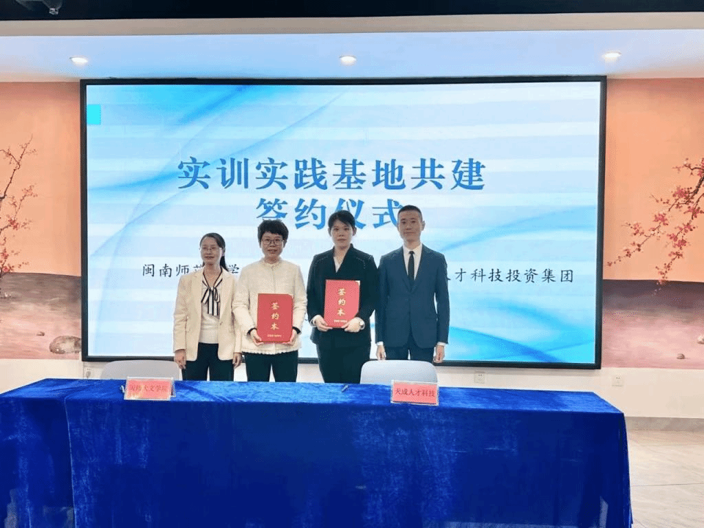与漳州天成人才科技投资集团有限公司实训实践基地共建签约仪式在两岸(漳州)青年人才融合发展中心举行。漳州人才发展集团党委委员、副总经理郑庆祥,漳州天成人才科技投资集团有限公司副总经理张婧、李哲楠,天使动漫