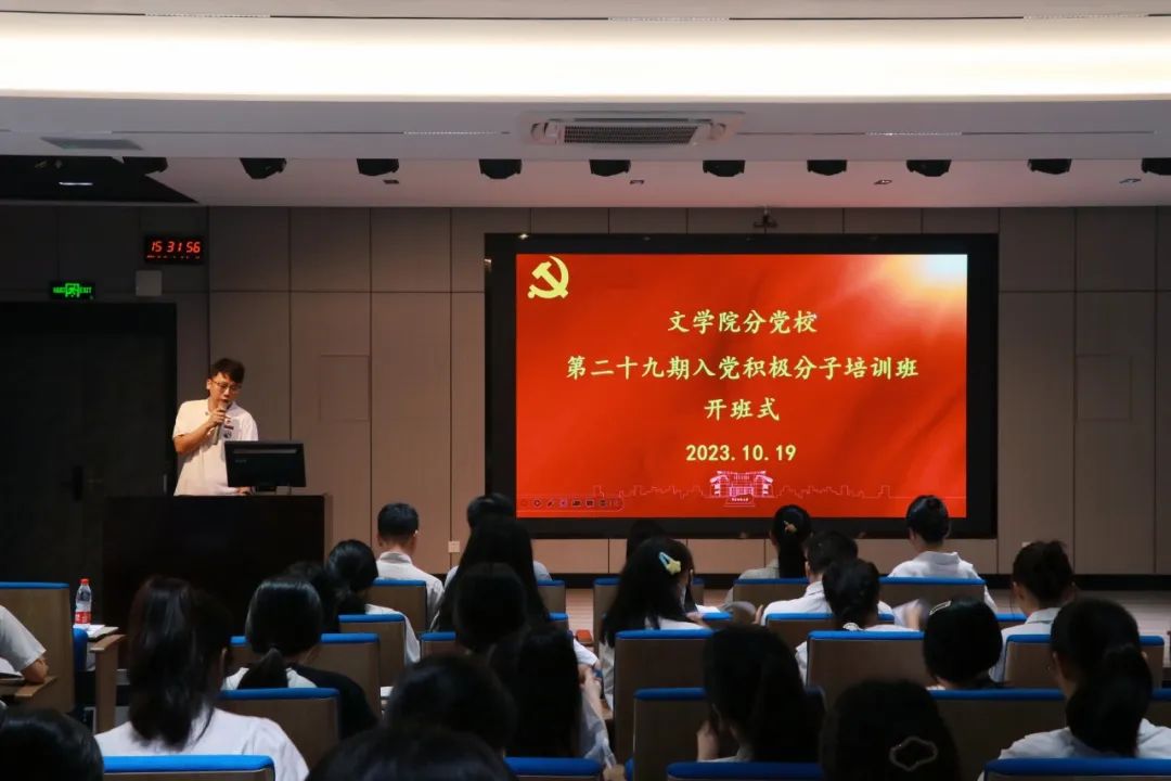 分党校第二十九期入党积极分子培训班的通知》,对本期培训班教学计划等相关安排作了介绍。学生第一党支部书记陈茹铃宣读《学员管理规定》,明确培训班各项教学管理要求。