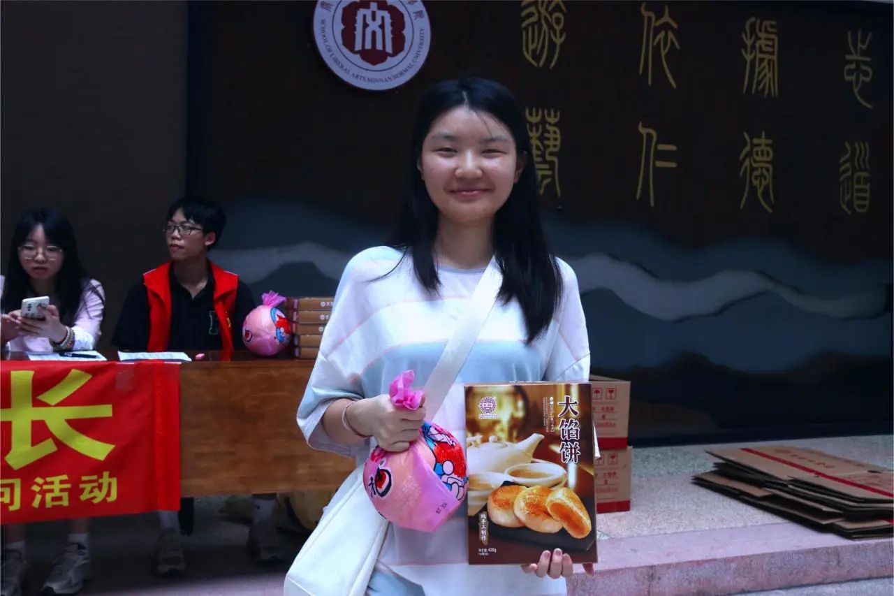 活动中,一盒盒包含着浓浓情意的月饼,于香甜之感中蕴含相思之情,一个个蕴藏着吉祥如意的柚子,寄托老师对同学们的美好祝愿。当这些礼物发放到学生手中时,这些满载着“团团圆圆,平安幸福,万事顺遂”寓意的慰问品,也将祝福传递到他们的心中。同学们的脸上洋溢着喜悦的笑容,也纷纷向老师送去节日的祝福和感谢。