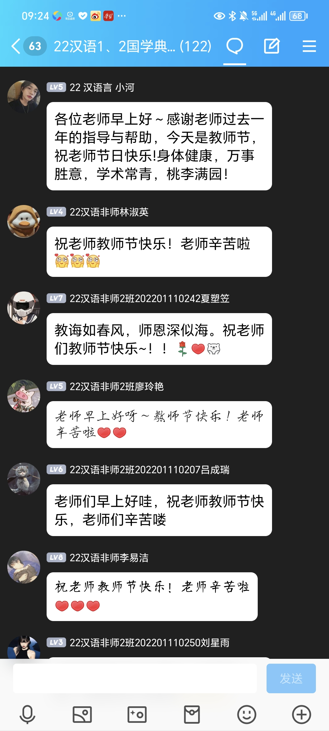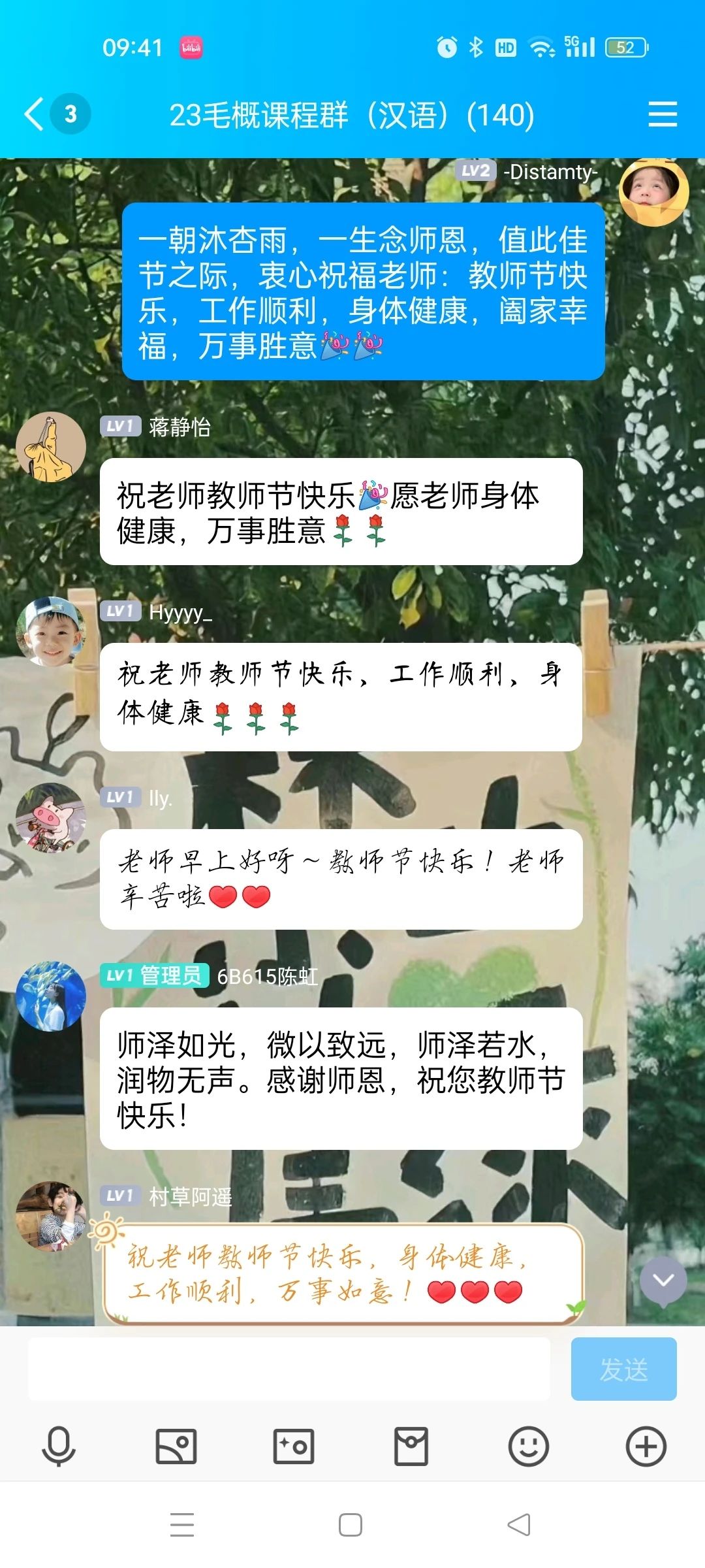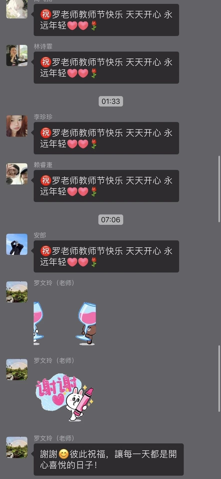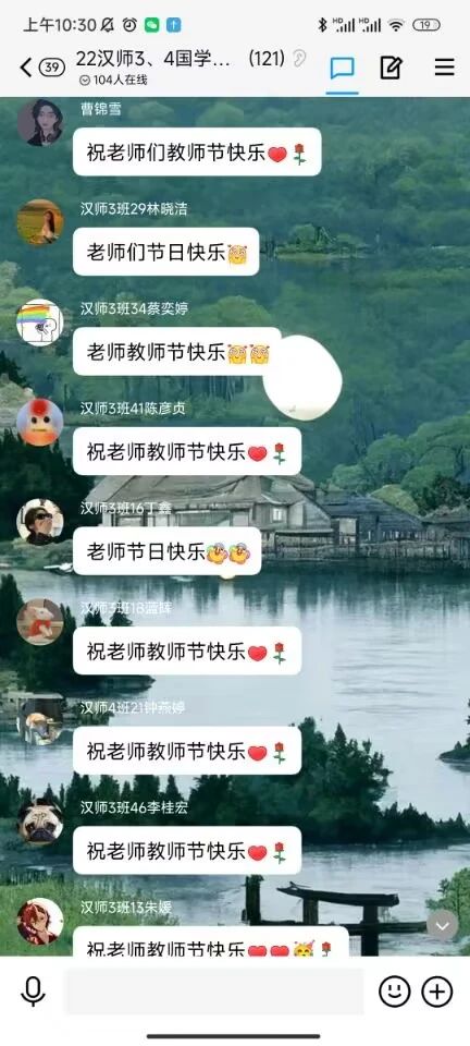 为表达对各科老师的美好祝愿,同学们在相关课程群组中为老师们送上最诚挚的祝福。