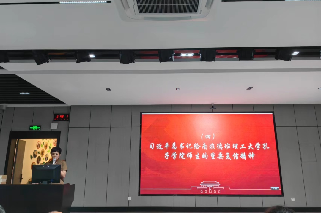 赵丽霞传达学习习近平总书记在二十届中央政治局第三次集体学习的讲话精神、习近平总书记在中央全面深化改革委员会第二次会议中《关于高等学校、科研院所薪酬制度改革试点的意见》的讲话精神、习近平总书记在全国生态环境保护大会上的重要讲话精神、习近平总书记给南非德班理工大学孔子学院师生的重要复信精神、习近平总书记对网络安全和信息化工作作出的重要指示精神。