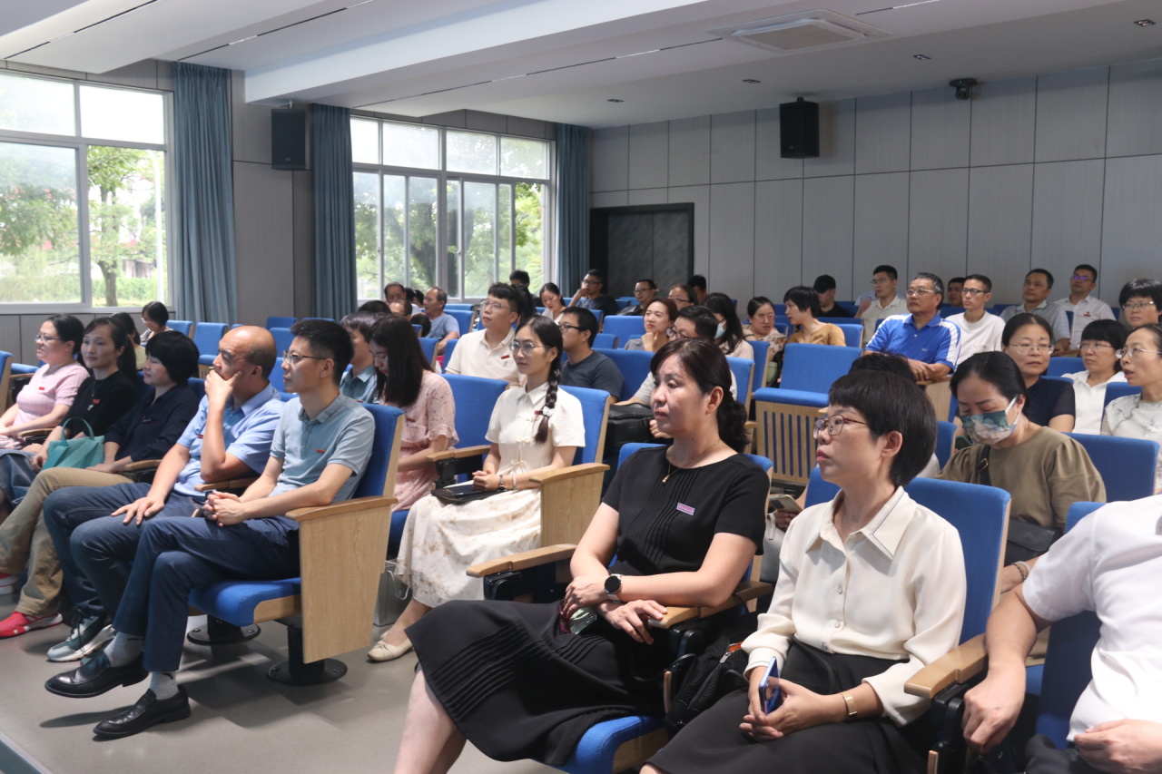 领导班子及全院教职工参加会议,会议由学院党委书记赵丽霞主持。