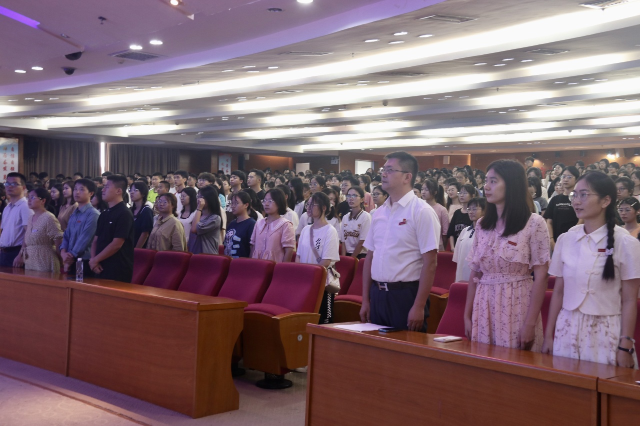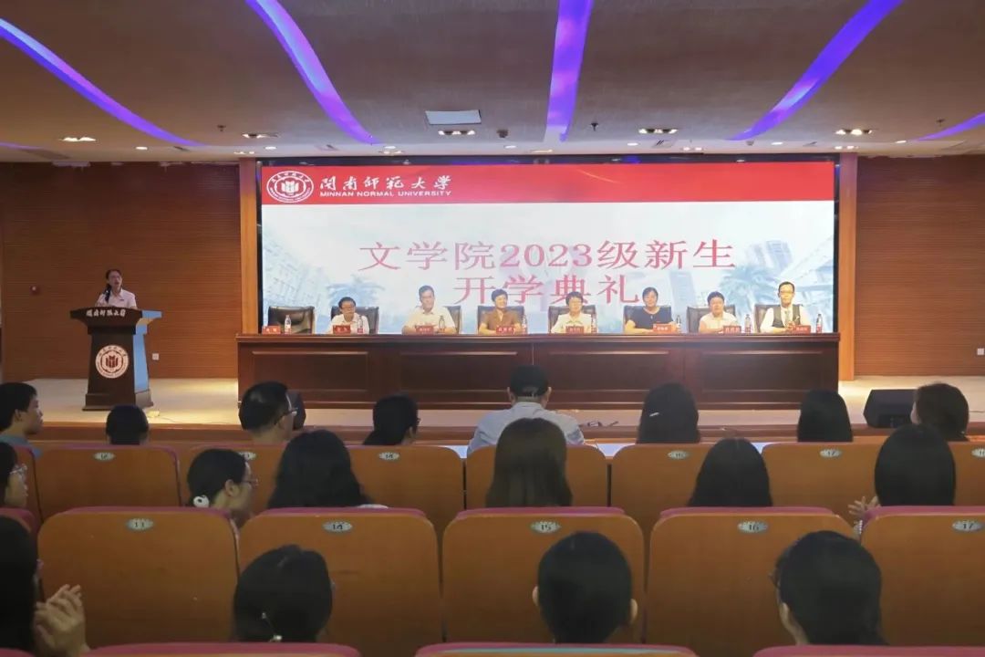 在逸夫图书馆五楼报告厅隆重举行2023级新生开学典礼。学院党政领导班子、院长助理、系主任、全体辅导员、新生各班主任、部分教师代表、8名博士生、138名硕士研究生和444名本科新生参加本次典礼。本次开学典礼由学院党委副书记林晓主持。