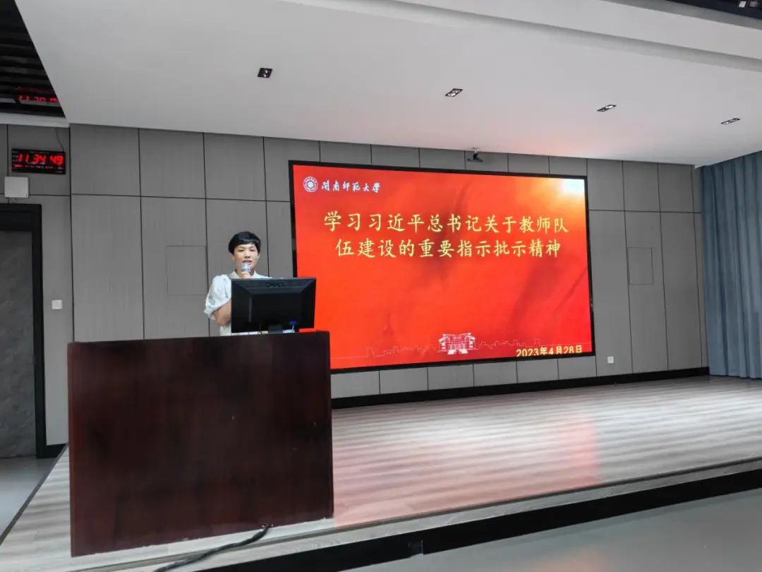 赵丽霞传达了学校《关于开展师德集中学习教育工作的通知》文件精神,带领老师们学习习近平总书记关于教师队伍建设的重要指示批示精神,结合违反师德师风的典型案例向全体教职工开展师德师风警示教育。她指出,教师是人才培养的主体,是立德树人的关键,抓好师德师风建设是打造高素质教师队伍建设的内在要求和重要保证,全院教师要把教书育人和自我修养结合起来,做到以德立身、以德立学、以德施教,发挥教师教书育人的功能和作用。她强调,作为高校教师要牢记为党育人、为国育才使命,深刻认识师德师风建设的重要性,以更高的站位,更大的担当,更高的标准,更严的要求,投入到师德集中学习中,投入到学院的发展建设中,不断提升自身各项素质,做“四有”好老师。