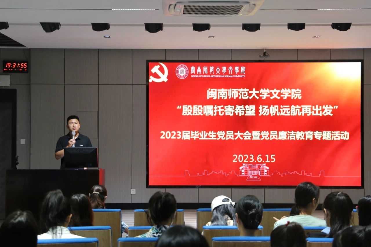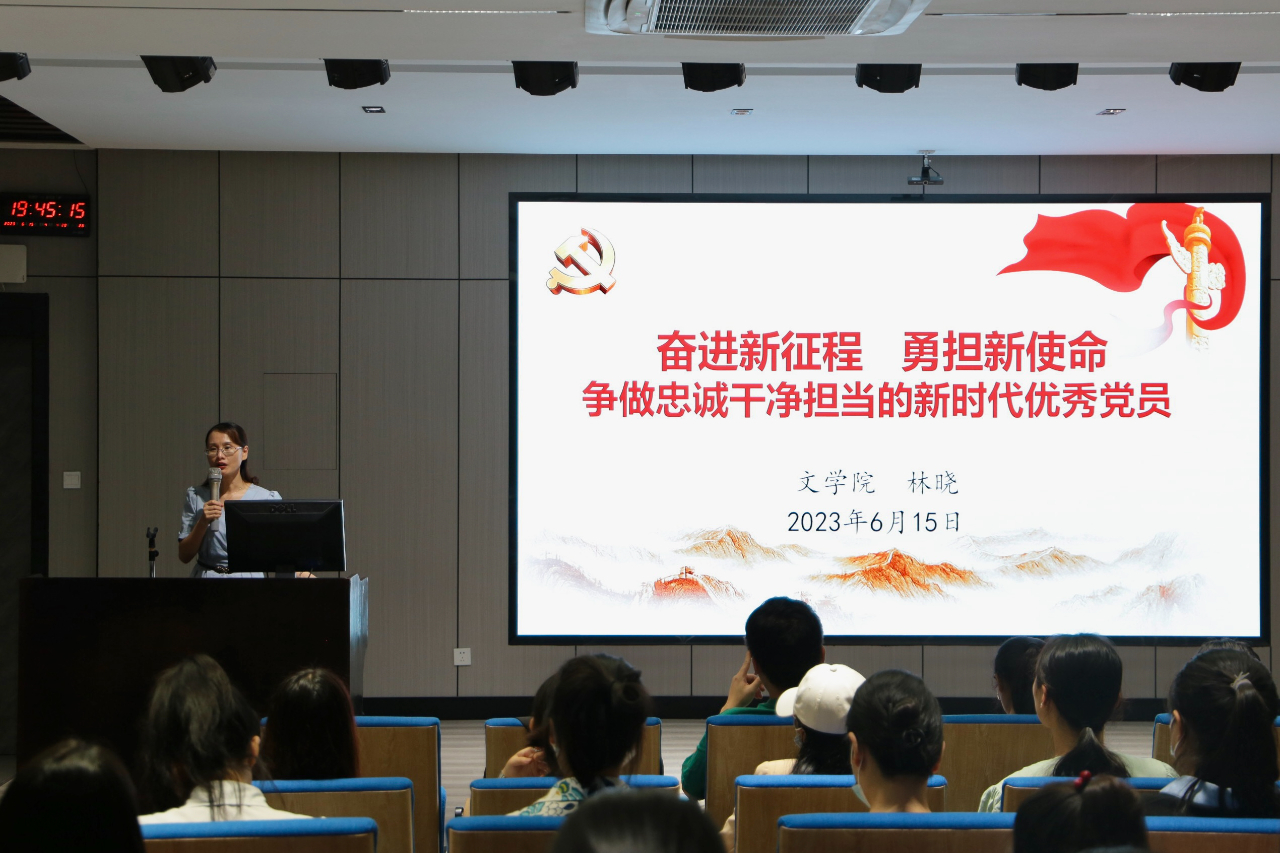 “博学、明理、砺志、笃行”的校训精神,发扬“艰苦奋斗、自强不息、攻坚克难、敢拼会赢”的优良传统,时刻保持党员意识,在奋发有为中践行初心使命。研究生毕业生党员代表陈碧云表达了对学校和学院的感激之情,感恩学校和学院提供了优越自由的学习环境。同时,对三年求学时光表达了难忘和不舍之情,表示今后将牢记使命,坚守党员职责,在新的岗位上继续发挥党员先锋模范带头作用,为母校争光,最后衷心祝愿母校更加绚丽辉煌。