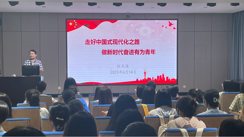 2021级、2022级本科生讲授《走好中国式现代化之路,做新时代奋进有为青年》形势与政策课,2021级、2022级本科生代表到场听课。