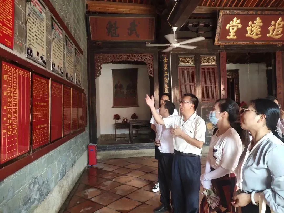 郑丽霞一行参加“长泰区文化遗产保护和珍贵书画修复成果展”开幕式,参观了长泰区博物馆馆藏文物、各类碑刻和珍贵书画等。随后前往岩溪镇实地考察省级文保单位珪后村追远堂、升厝,武安牌坊群、义泉井,林震状元出生地张氏家庙,以及全国孔保单位长泰文庙等地,对长泰历史及其文化名人、古迹、文物等作深入调查。