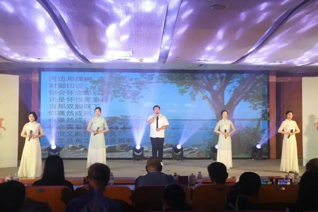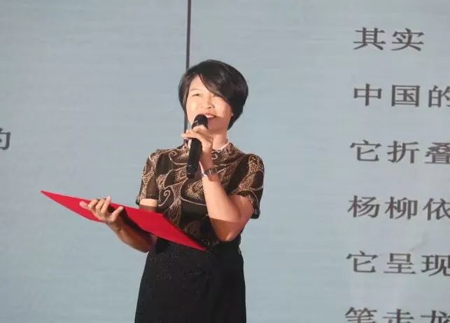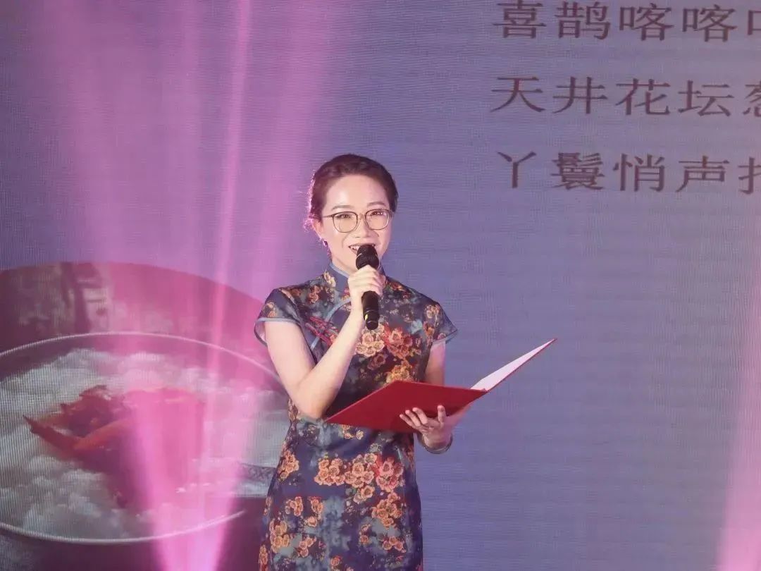 教师代表上台朗诵《六五行献诗闽南》,呼吸闽南味,品味民国情,温暖游子心。