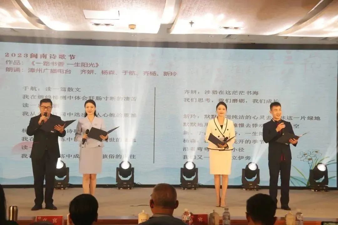 漳州广播电台齐妍、杨森、于航、齐杨、新玲在文墨飘香的氛围中,用最炙热的情愫,献予《一路书香,一生阳光》。