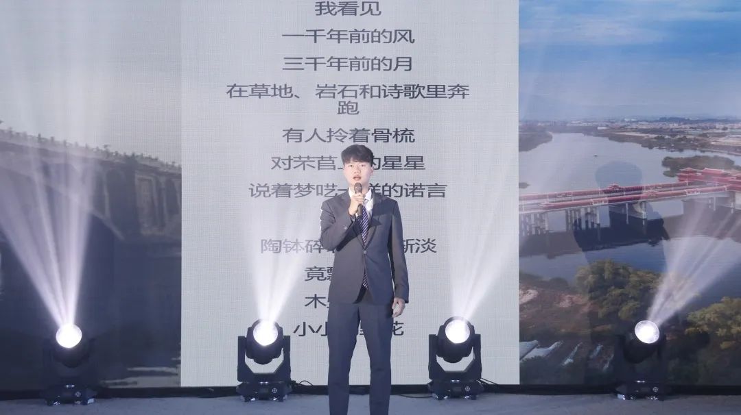 海峡的风卷起胡杨的叶片,时光也在光与微尘中舞蹈,我们在漳州市作家协会主席陈子铭带来的朗诵《九龙江与木垒河的对望》中与岁月对望。