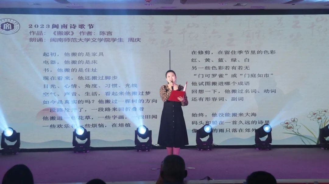 龙海区港尾中学蔡凌带来的诗朗诵《朽木不朽》,似乎将时间定格于诗歌中,纵使岁月蹉跎,不朽的诗与时同长。