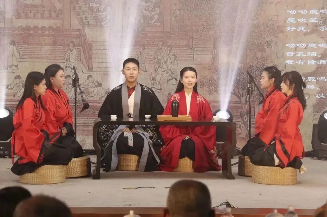 泠音琴社为现场观众带来《鹿鸣》,诗歌朗诵会在悠扬的琴声与歌声中拉开序幕。