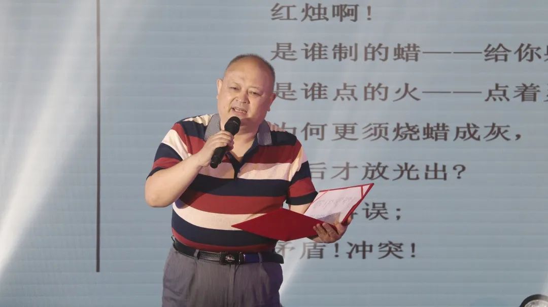 教师任毅于《红烛》中歌颂红烛熠熠奉献精神,歌颂来之不易的光明。