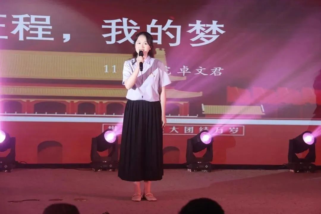 在校生卓文君的诗朗诵《你的征程,我的梦》描绘广大青年学子新的远方。