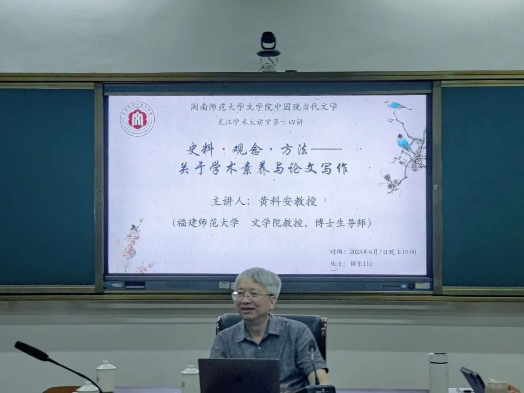 胡明贵教授代表在场师生向黄科安教授表示感谢。他指出,黄科安教授的讲座高屋建瓴,鞭辟入里,理论穿透性与学术启发性极强,给参与讲座的研究生们补了一堂扎实的新文学史料学课,极大拓宽了研究生们的学术视野。