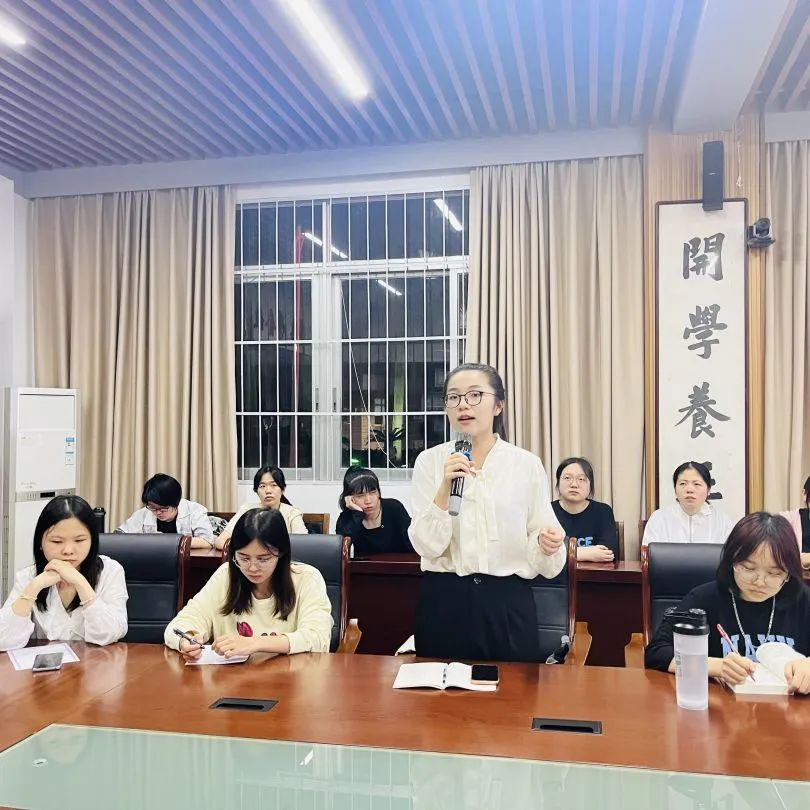 会上,两位2023届毕业班辅导员廖利明和陈芳苹分别介绍了目前本科毕业生和研究生毕业生就业的最新情况,具体分析了当前的就业形势,鼓励毕业班党员先行就业、主动担当,积极作为,共同协助老师开展毕业生工作,尽己所能为同学服务。与会学生党员深受感召,纷纷分享自己在升学就业、班级管理方面的感悟。19级汉师4班黄逸逍同学围绕“一个定位”“一种态度”“一个原则”,以贴心、用心、知心三个关键词,就毕业班党员如何站好最后一班岗谈自己的体会。19级汉师6班黄雨筝同学分享了考研过程中的心得及方法,认为毕业班党员应在班级建设中发挥先锋带头、引领指导、奉献服务、上传下达等作用。19级汉师3班叶紫茜以具体课例为导向,阐明了片段教学的关键要点,以此带动班级其他同学不断精进教师技能,用实际行动践行毕业班党员的职责。21级学科班陈煜莹、章嘉芸同学,结合自身省赛、国赛的备赛经历,着眼于岗位选择、备考过程、备考心态三个方面,对研究生专项招聘的流程进行了多维度的阐述,明晰毕业班党员的努力方向。