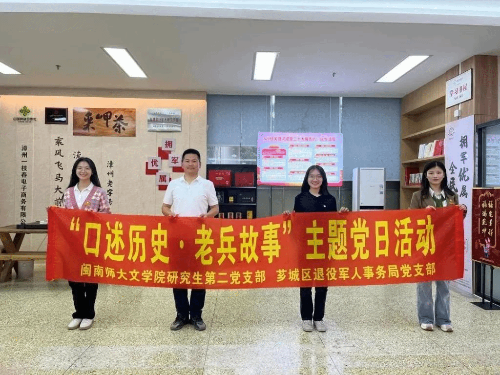 研究生第二党支部与漳州市芗城区退役军人事务局支部合作开展“口述历史·老兵故事”活动,特成立采访小组,邀请漳州市芗城区“忠诚卫士”李明进行第二期专访,讲述军人楷模背后的故事。