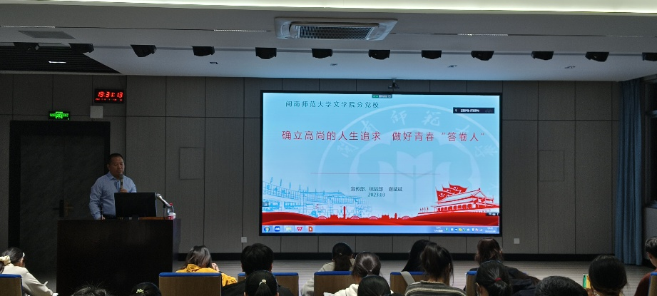 谢斌斌老师以古希腊名人及自身案例作为切入点,点出本堂课的主题:“人的追求”。课上,他引导学员们思考“人与动物有何区别”,在学员们的思考中引出“人的三观与人生的真谛”。最后,以李大钊“以青春之我,创建青春之国家民族”的高呼、陈祥榕“清澈的爱,只为中国”的话语,勉励全体学员坚定对马克思主义的信仰、对中国特色社会主义道路的信念,做好青春“答卷人”。