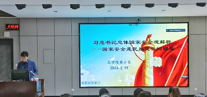 团委书记黄小乐为第二十八期入党积极分子讲授主题为《习总书记总体国家安全观解析——国家安全是民族复兴的根基》的专题党课。