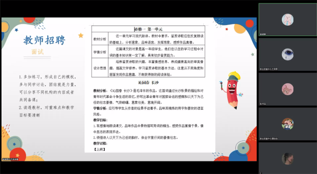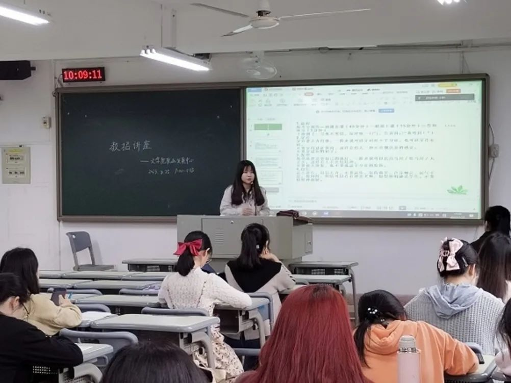 讲座伊始,叶紫茜学姐就教招政策、面试准备、笔试准备、注意事项等方面做了分享,并结合个人实际经历向同学们提出建议。冯玥学姐着重介绍了优秀师范毕业生政策的范围和益处,就教师技能大赛的选拔流程做了详细的介绍,并分享了自己的面试经历、心得体会。严泽慧学姐向同学们详细阐述了教招的准备过程和面试流程。她强调,同学们要利用好网络资源来获取信息,在面试过程中要稳住心态。蔡诗婷学姐侧重从应试技巧出发,细致讲解了自我形象管理、熟悉教材、教学设计、学写板书、模拟上课等事项。