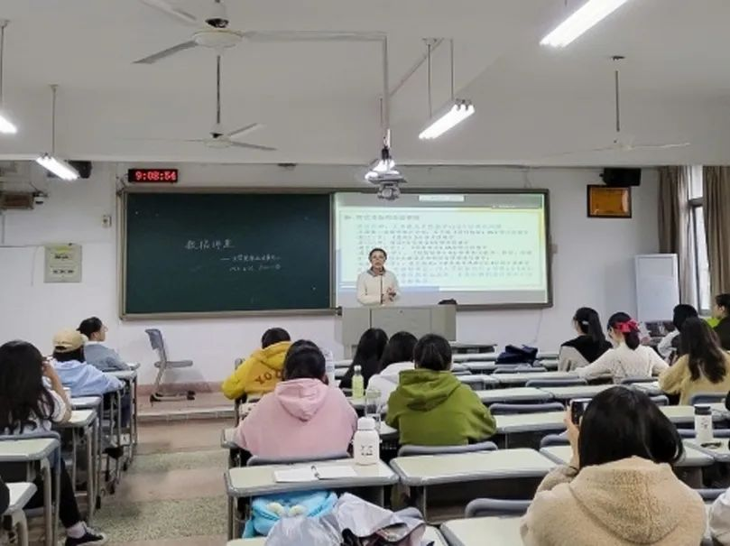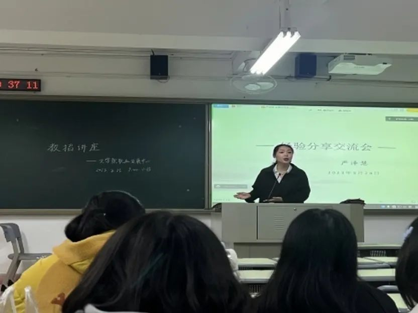 于博东504举办教招经验分享会。本次讲座由四位在2023年第九届福建省高校师范生教师技能大赛中斩获佳绩的2019级优秀师范毕业生分享教招经验。