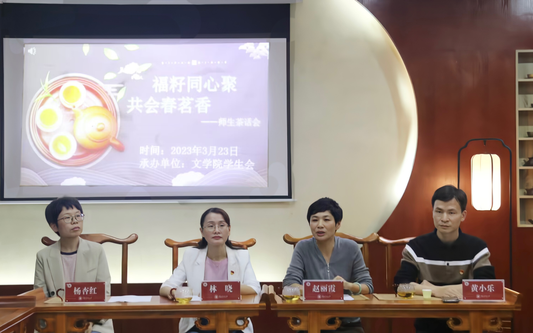 在茶室举办“福籽同心聚,共会春茗香”师生茶话会。学院党委书记赵丽霞、党委副书记林晓、副院长杨杏红、教务科科长曾芳受邀出席,10位少数民族学生代表参加,本次茶话会由团委书记黄小乐主持。
