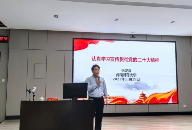 张龙海从全面准确学习领会党的二十大精神和认真学习宣传贯彻党的二十大精神两部分展开详细讲解,重点阐述了新时代党的“一个中心任务”,全面建设社会主义现代化强国分“两步走”战略安排,全党必须做到“两个结合”、“三个务必”,牢记“五个必由之路”,“六个坚持”开辟马克思主义中国化时代化新境界,以“中国式现代化”全面推进中华民族伟大复兴等方面的内容,对党的二十大提出的新思想新论断做出全面系统的宣传讲解。