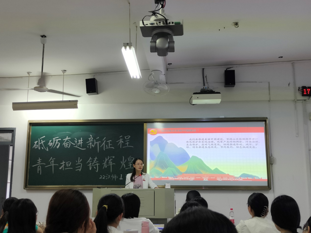 林晓老师以党的二十大主题为切入点,结合十年来党经历的三件大事、如何继续推进实践基础上的理论创新、中国共产党的中心任务、中国式现代化、全面建成社会主义现代化强国的战略安排、全面建设社会主义现代化国家的首要任务、基础性、战略性支撑、应有之义、必须牢牢把握的重大原则、推进美丽中国建设、五个“必由之路”等方面对党的二十大报告进行详细解读,带领同学们深入学习领会党的二十大报告蕴含的真理的力量。