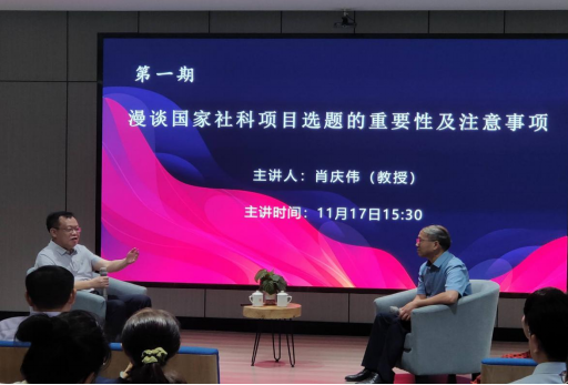 、新闻传播学院、教育科学学院、马克思主义学院、法学院、艺术学院等多个学院的教师参与此次活动。第一期活动邀请校党委副书记肖庆伟教授主讲,围绕“国家社科基金项目·选题依据”主题展开,由黄金明教授主持。