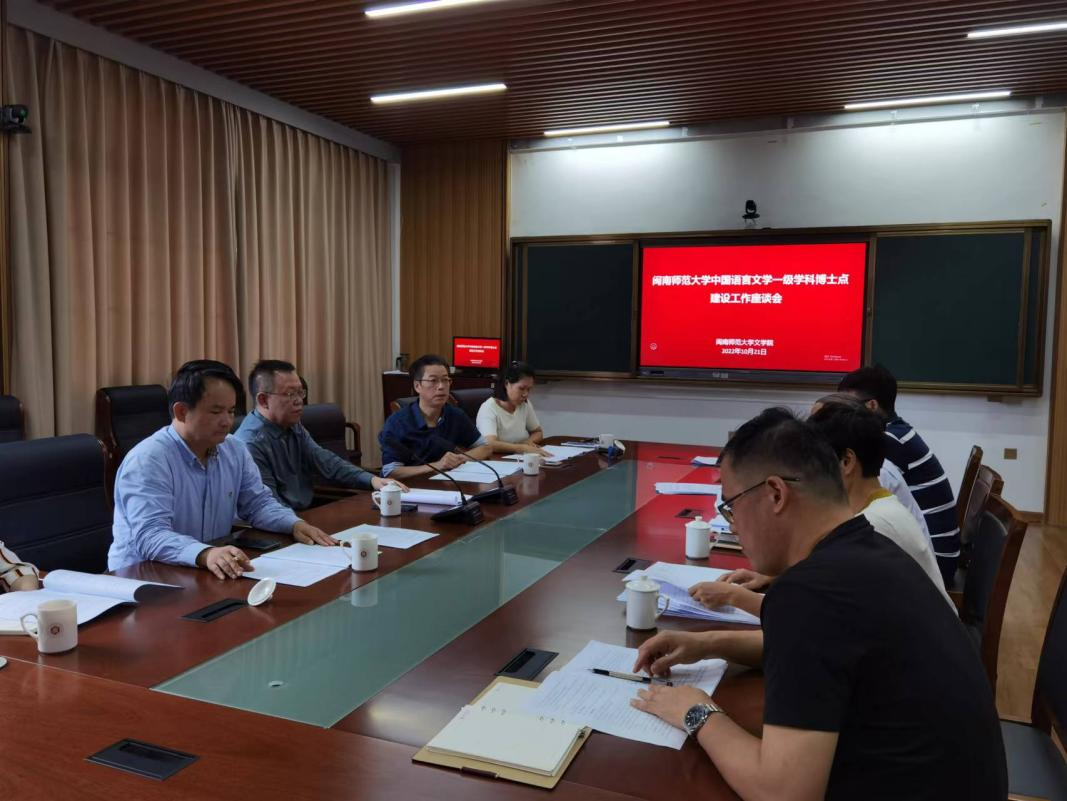 在博东110会议室组织召开中国语言文学一级学科博士点建设工作座谈会。校党委副书记肖庆伟,校党委常委、副校长张龙海,学科建设与研究生工作处处长李建辉,天使动漫