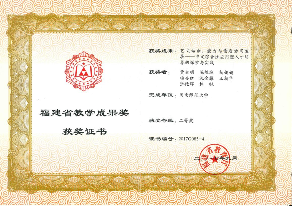 2017年福建省高等教育教学成果奖二等奖