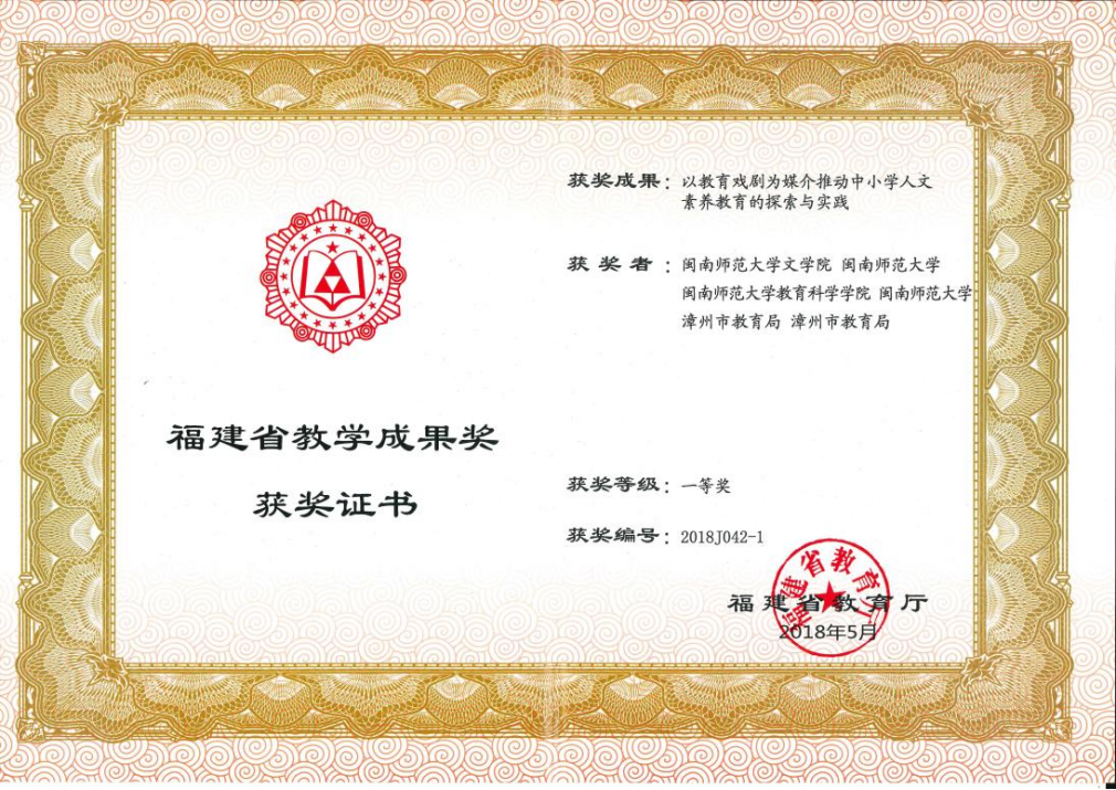 2018年福建省基础教育教学成果奖一等奖