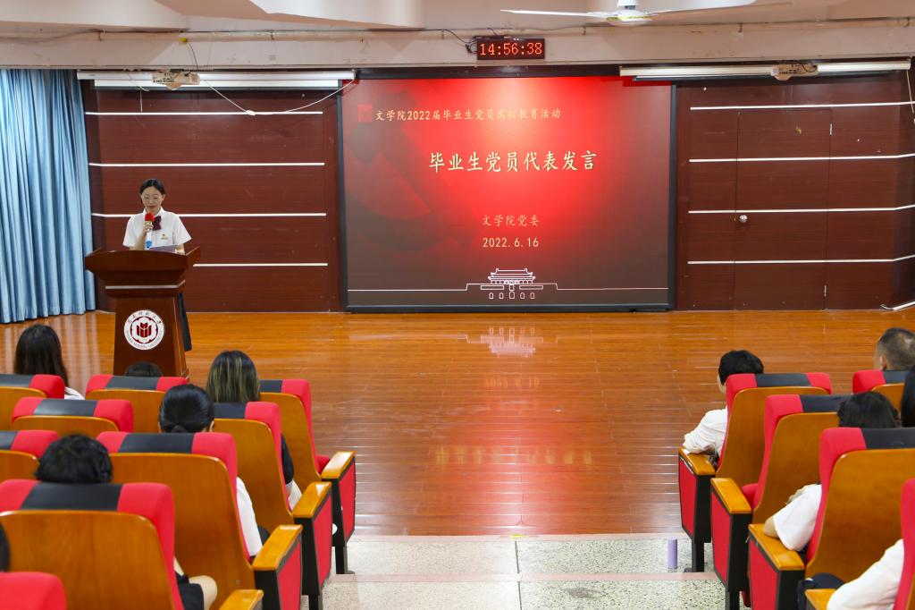 于博西梯一举行2022届毕业生离校教育活动。学院党委书记赵丽霞、副书记谢斌斌、团委负责人许新华以及112名毕业生党员到场参加。活动由党委组织员林枫主持。